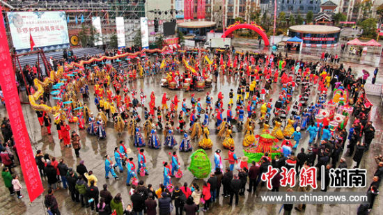 中新网湖南新闻12月29日电 (通讯员 彭宏高 周晶晶)12月28日至29日,湖南省新晃侗族自治县举办第二届鼟锣民族文化艺术节,吸引湘黔两省数万民众参与,众人欢聚一堂,共享侗族文化盛宴。